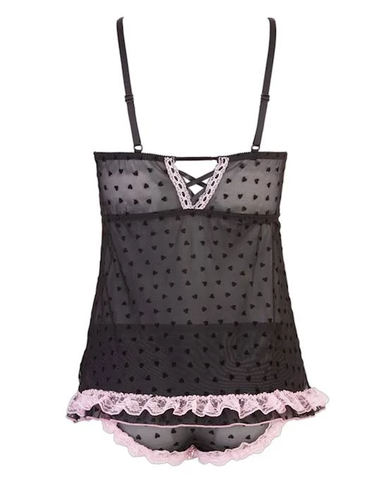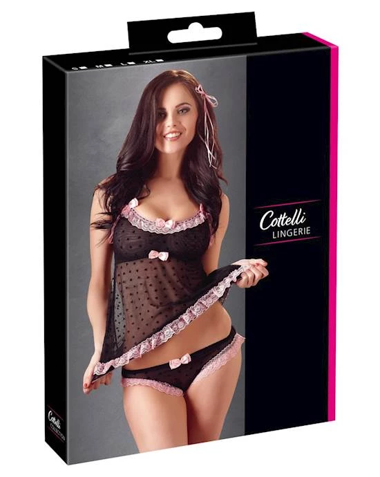 Sweet as candy, this Baby doll and Panties set by Cottelli is perfect for lounging around while looking super sexy.