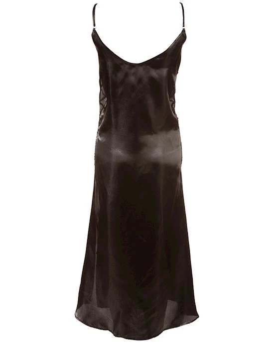 This ankle-length negligee is truly a dream in black and perfectly matches your astonishing curves. Another highlight are the completely open side sections, held together in the upper area only by ingenious decorative lacing. The thin straps are adjustable in length for a better fit.